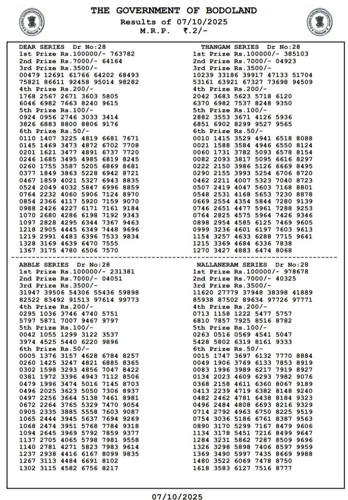 Download the Bodoland Lottery Result in a PDF format.
